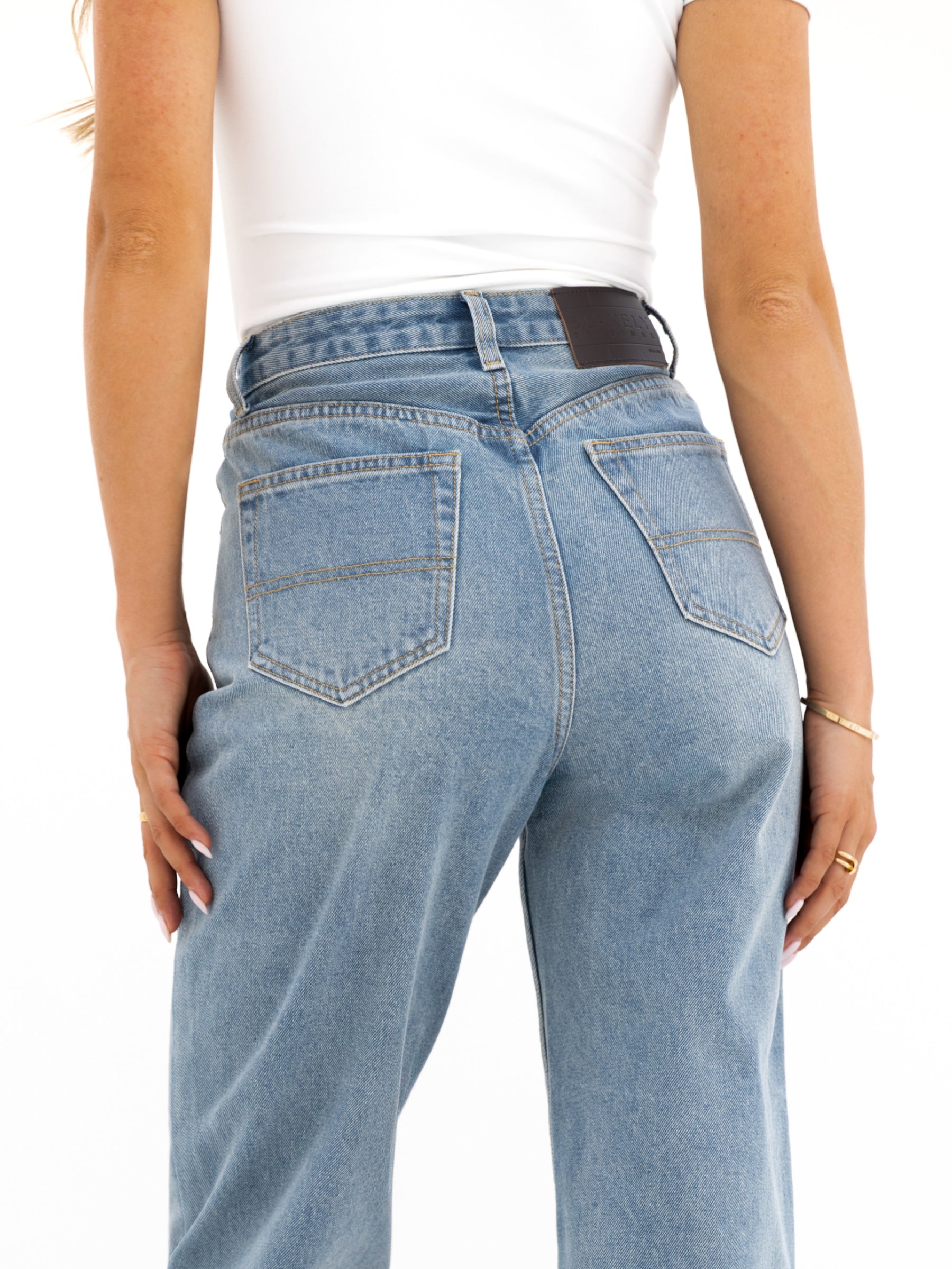 Our Blakely Mom Jeans have a High-rise, straight-leg, and relaxed through the hip. Made from durable, rigid denim that keeps its shape, wear after wear. Easy to style with everything from oversized knits to your favourite tee, they’re the ultimate throw-on-and-go denim for every day.