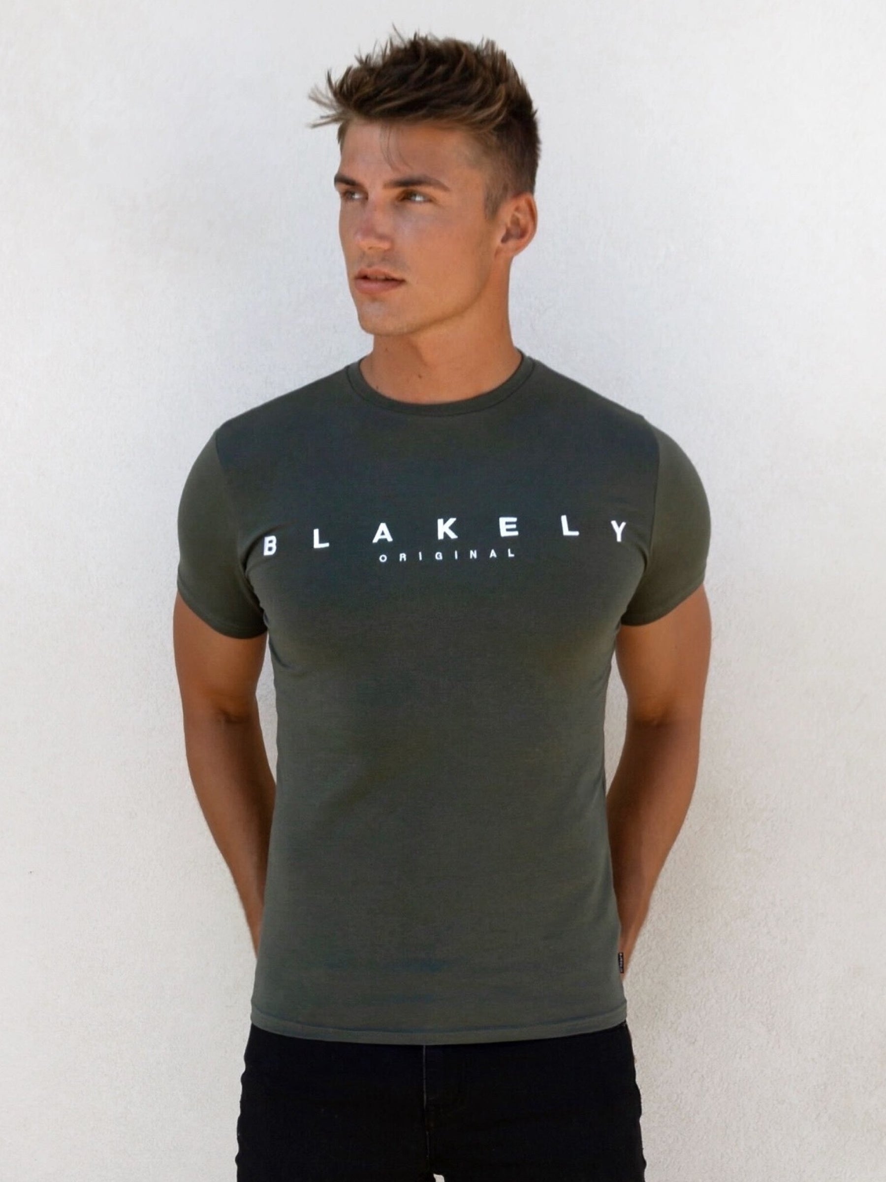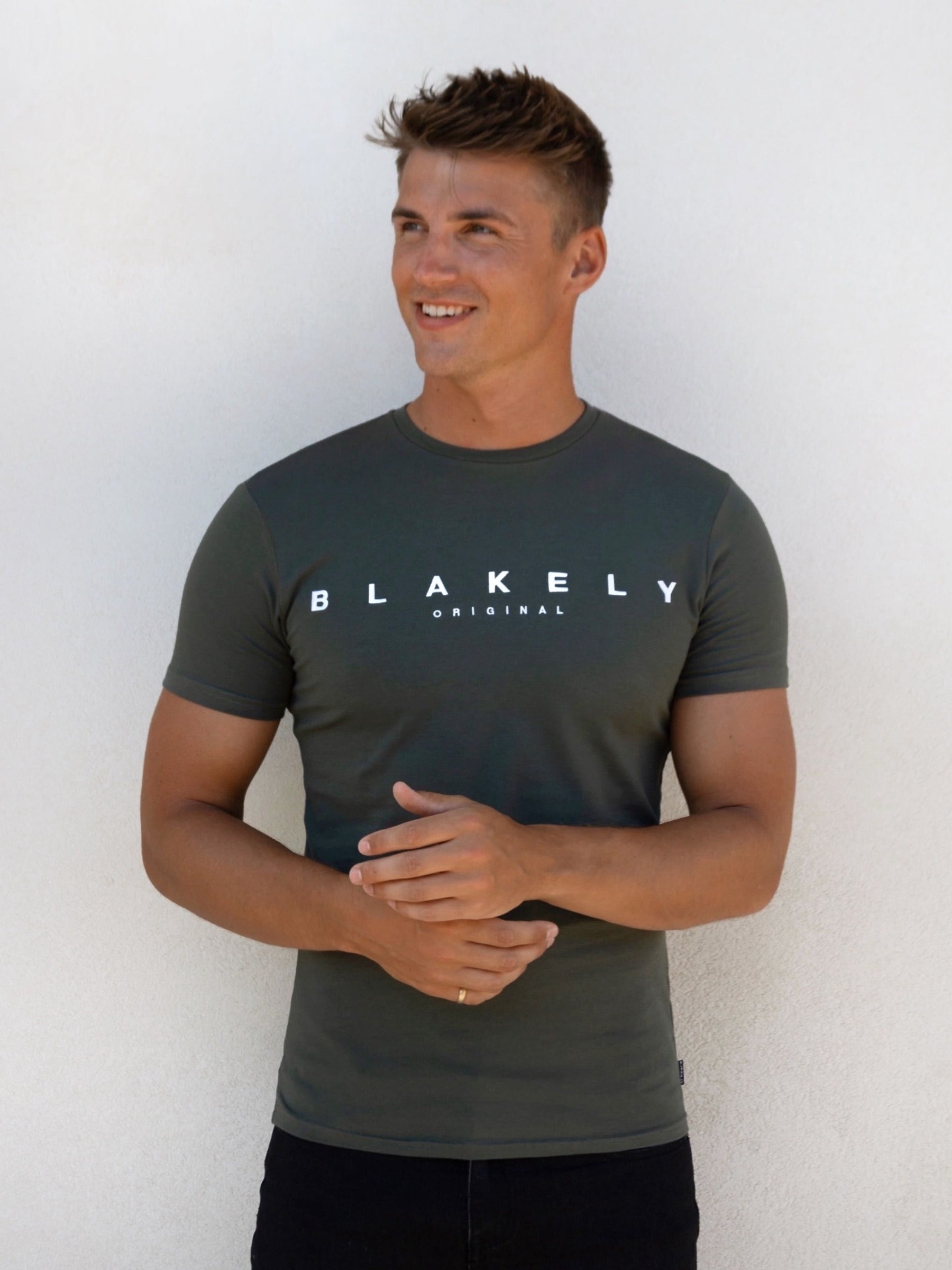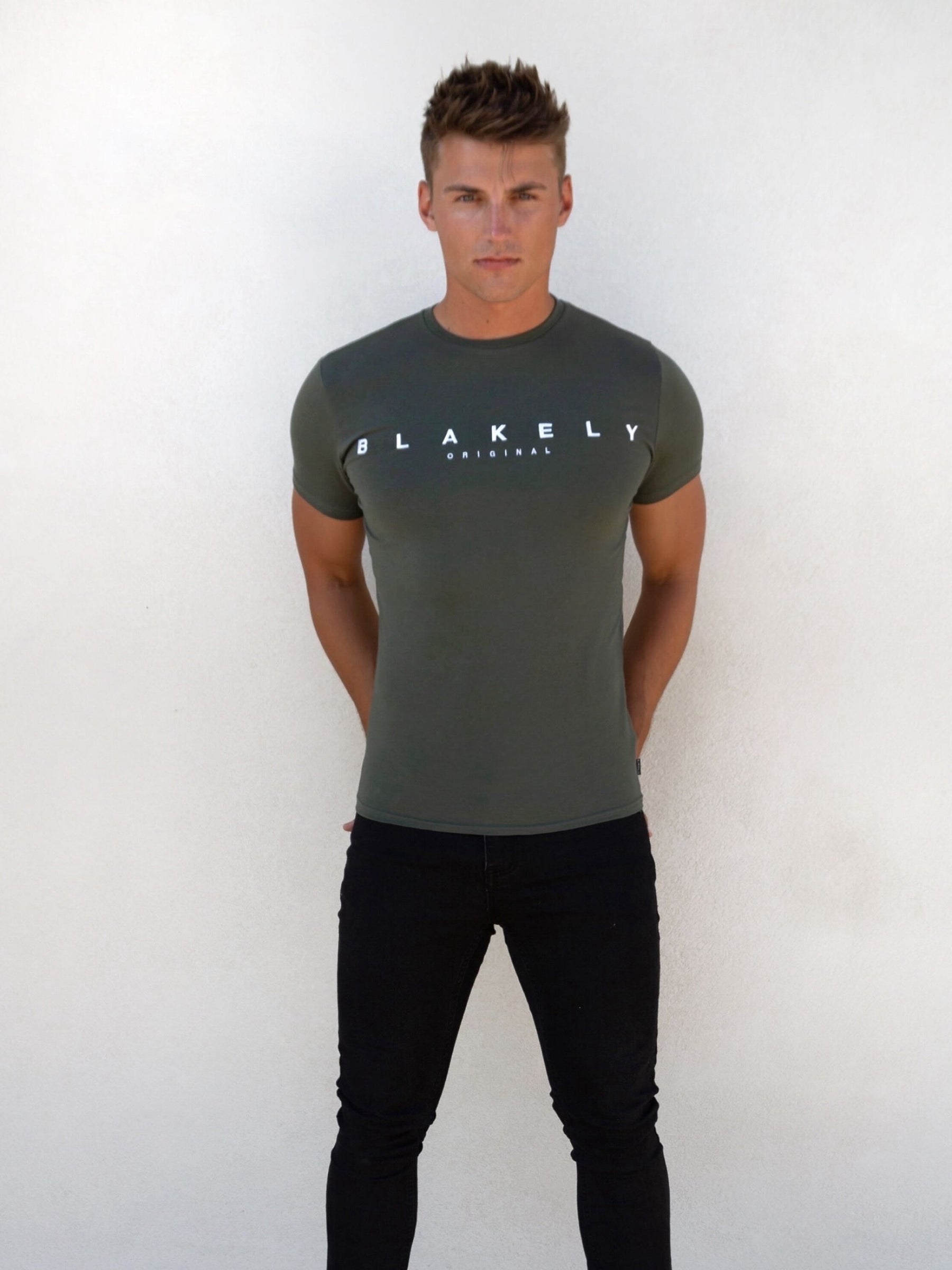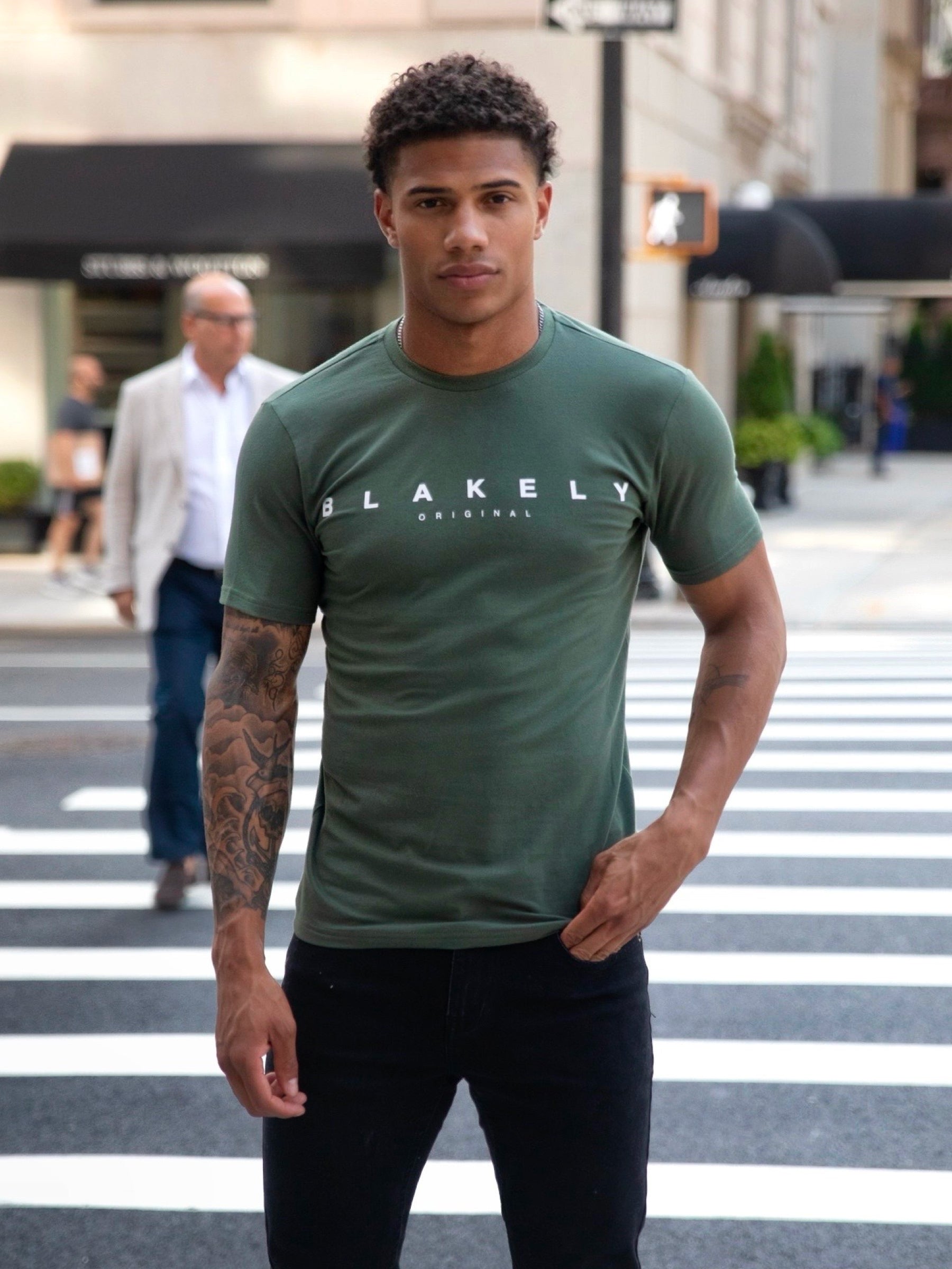 Introducing the Tahiti T-Shirt in green, a slim-fit t-shirt made from a soft cotton blend. It has short sleeves, a crewneck collar, and is finished with Blakely branding on the centre front.