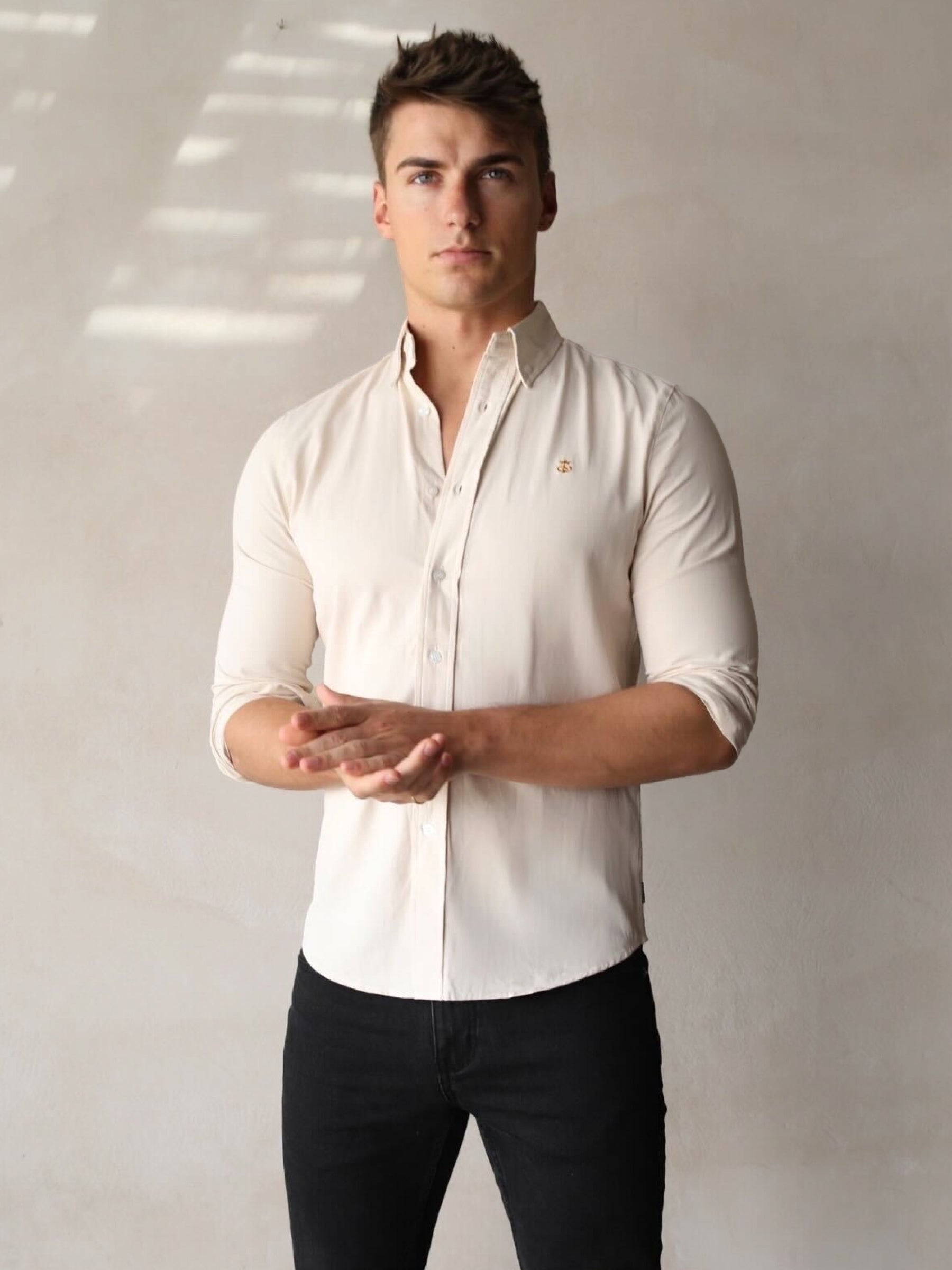 Our Vienna shirt has been carefully crafted to seamlessly provide a blend of style and versatility. Details include our signature Anchor logo embroidered in gold on the chest, long sleeves and a slim-fit design.