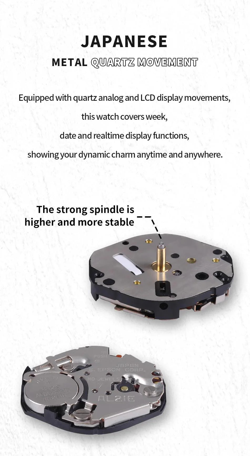 Feature: 30M Water Resistant, Luminous hands, Day and Date Display,Dual Time